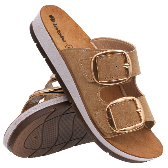 • INBLU-Shop – Damenschuhe, schützende Flip-Flops für den Freizeitgebrauch, polnische Produktion. Obermaterial aus Kunstleder. Innenfutter aus weichem, naturbelassenem Leder. Unterseite aus leichtem, flexiblem PU-Material.