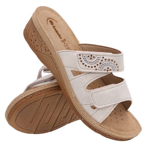 - INBLU – Damenschuhe, schützende Flip-Flops für den Freizeitgebrauch, polnische Produktion. Obermaterial aus Kunstleder. Innenfutter aus Naturleder. Unterseite aus leichtem, flexiblem PU-Material.
